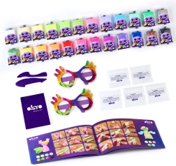 - 24× balíček hmoty (10 g), obrázkový návod, modelovací nástroje, 5× uzavíratelný sáček, 2× papírové brýle