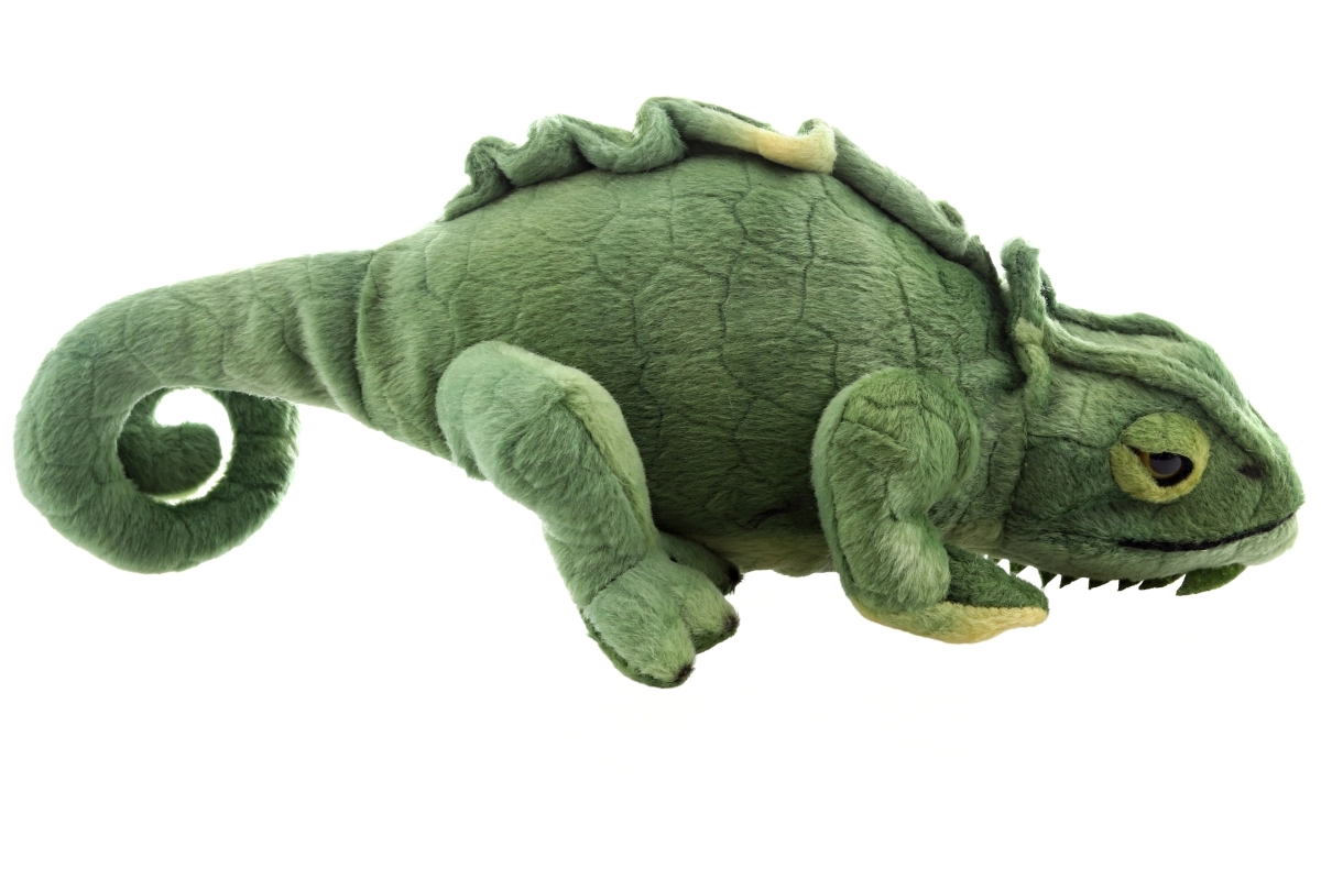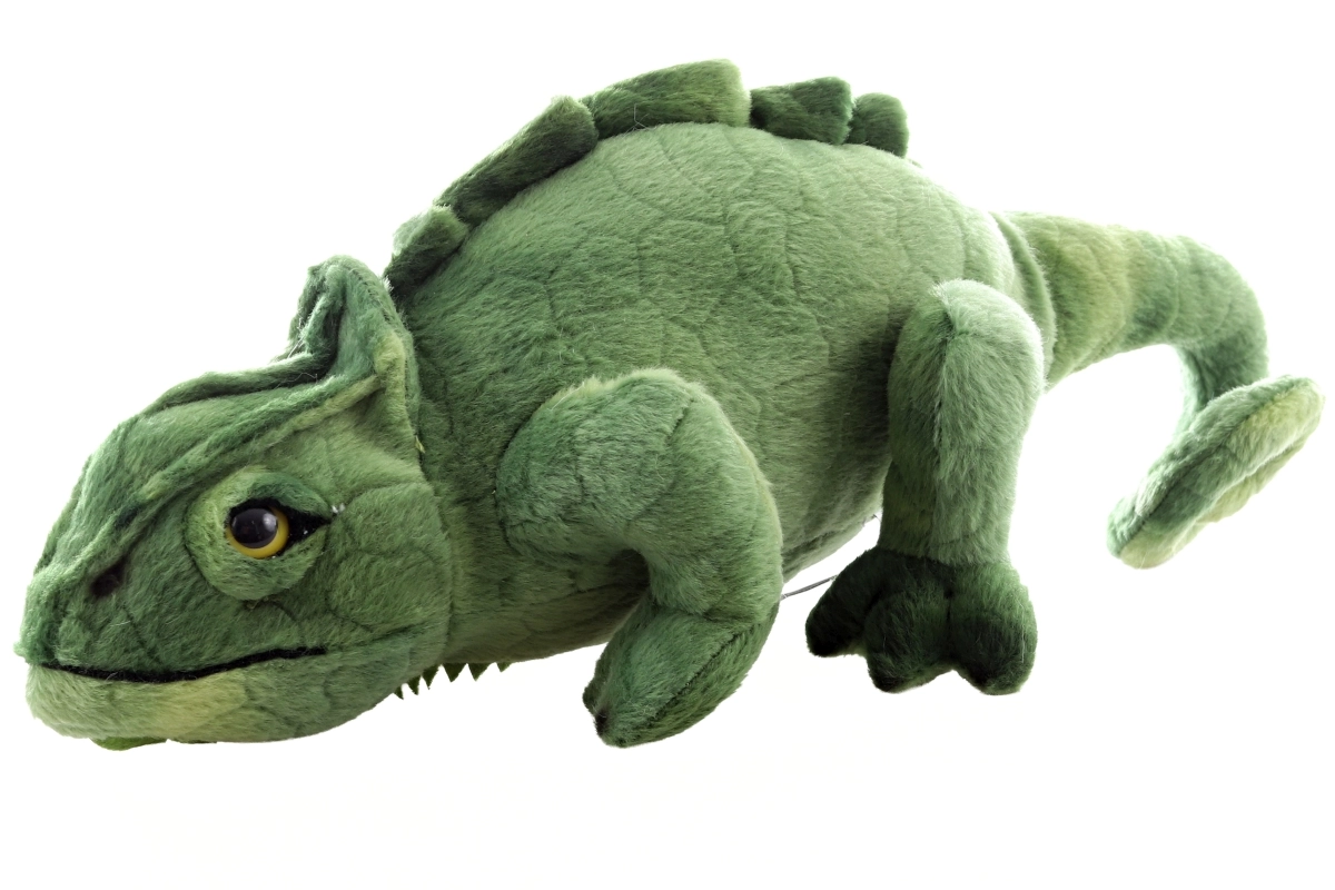 Tento eco-friendly plyšový chameleon potěší realistickým vzhledem s charakteristicky tvarovaným tělem, jemnými hřbetními detaily a zatočeným ocasem. Měkoučká výplň a hebký povrch zajišťují pohodlné mazlení, zatímco vyšívané oči a pečlivé švy poskytují bezpečnost i pro nejmenší.