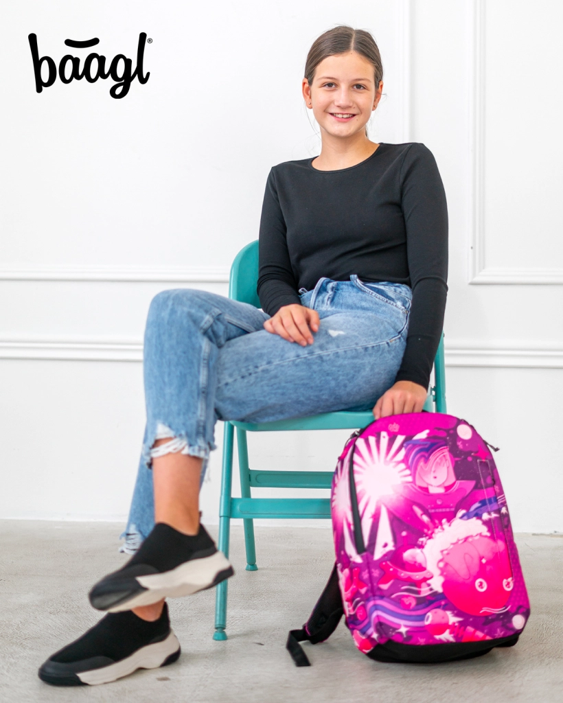 Objevte lehký a odolný batoh BAAGL eARTh – Ufo by Mára Čmára, který kombinuje výrazný vesmírný design s udržitelnými materiály. Voděodolná tkanina ze 100% recyklovaných vláken chrání vaše věci v každém počasí, zatímco ergonomicky tvarovaná záda a polstrované, nastavitelné popruhy zajišťují pohodlí po celý den.