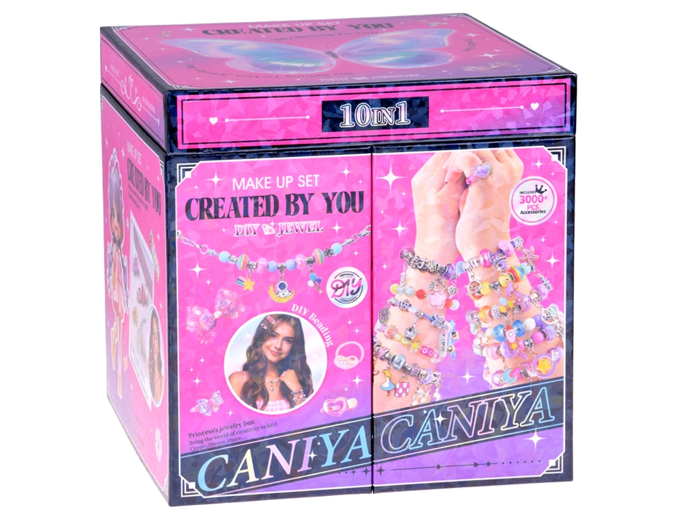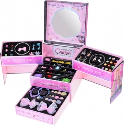 Kouzelná rozkládací šperkovnice s korálky, přívěsky a ozdobami do vlasů promění každou malou parádnici v tvůrkyni vlastní krásy. Díky třem úrovním úložného prostoru, zabudovanému zrcátku a bohaté výbavě vytvoří originální náramky, náhrdelníky i účesy. Bohatý obsah, praktická organizace a podpora kreativity a jemné motoriky dělají ze sady ideální dárek pro každodenní zábavu.