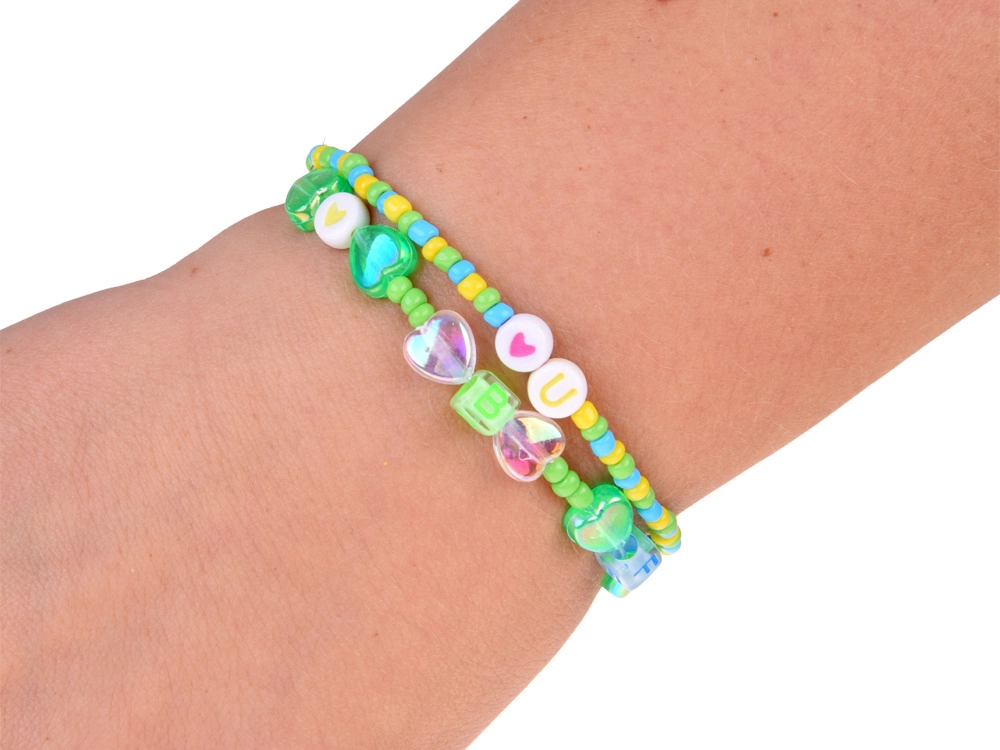 Set podporuje kreativitu, soustředění a trpělivost a pomáhá rozvíjet jemnou motoriku. Děti mohou tvořit podle přiložené knížečky s nápady nebo se řídit vlastní fantazií a kombinovat barvy, tvary i přívěsky.
