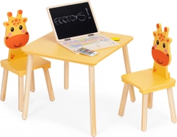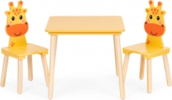 Vytvořte pro své děti kouzelný koutek pro kreativní aktivity. Dětský stoleček se širokou, snadno omyvatelnou deskou a dvě židličky s opěrkami ve tvaru žirafy zútulní interiér a podpoří samostatnost i správné sezení. Masivní dřevěné nohy a pevné zpracování zajistí dlouhou životnost a bezpečí při každodenním používání.