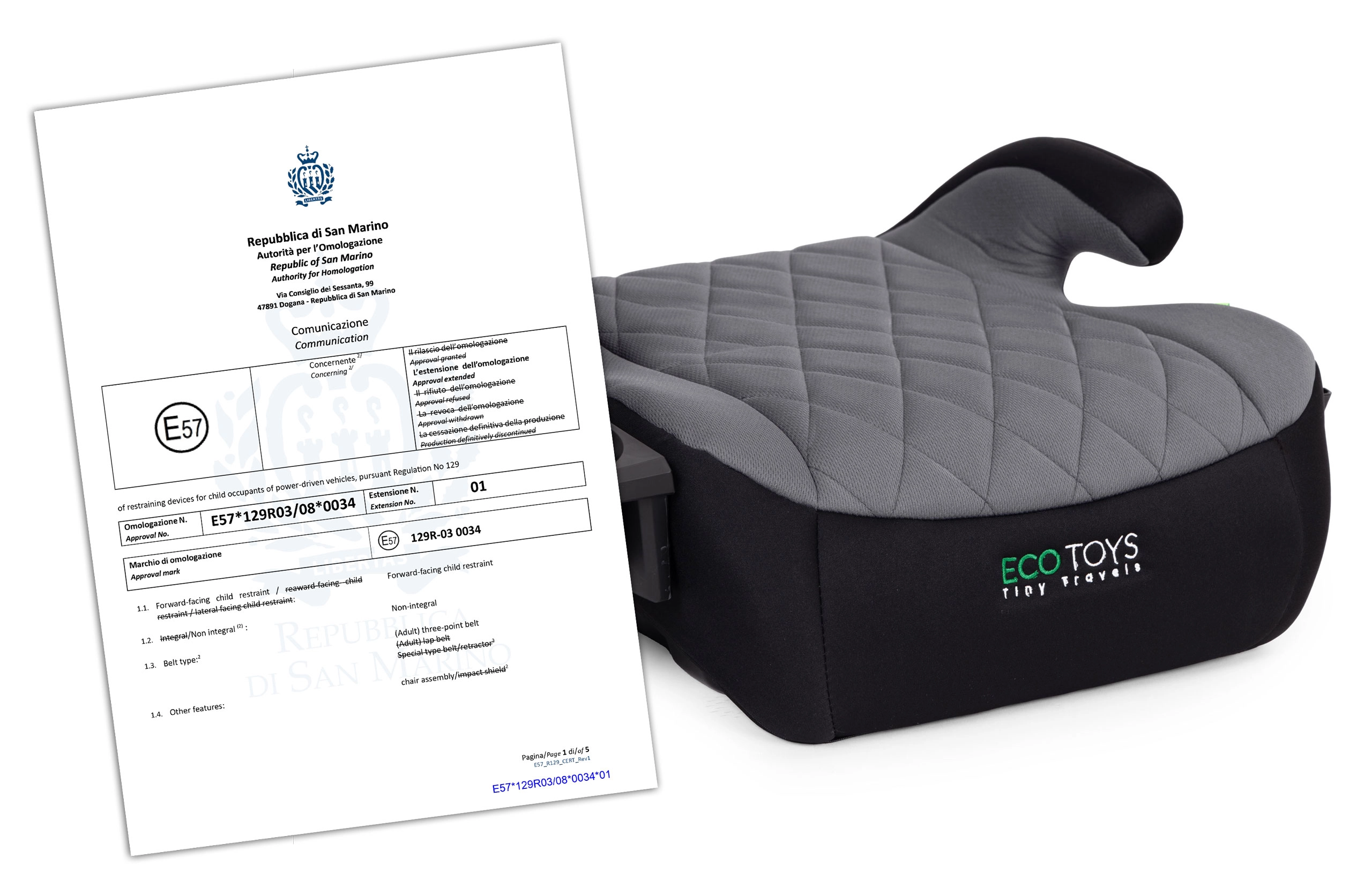Bezpečný a pohodlný podsedák ECOTOYS pro děti vysoké 125–150 cm s upevněním ISOFIX, certifikací i-Size (ECE R129/03) a praktickým držákem na nápoj. Nabízí správné vedení bezpečnostního pásu, měkké polstrování a snadno snímatelný pratelný potah pro každodenní hygienu.
