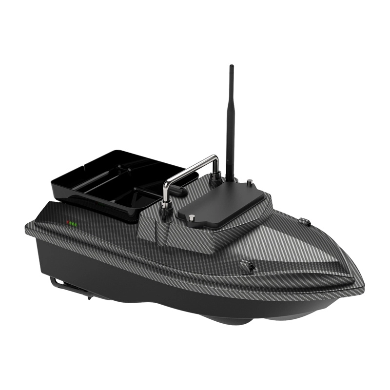 Velká zadní zásobníková komora pojme až 2 kg návnady. Dva silné motory udrží stabilní směr i na větších vodních plochách.