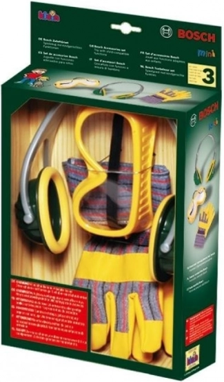 Dopřejte malým kutilům bezpečné a zábavné hraní s kvalitní dětskou sadou BOSCH. Souprava obsahuje ochranné brýle, sluchátka na uši a pracovní rukavice v designu inspirovaném skutečným nářadím BOSCH. Ideální pro napodobivou hru a učení bezpečnosti od 3 let.