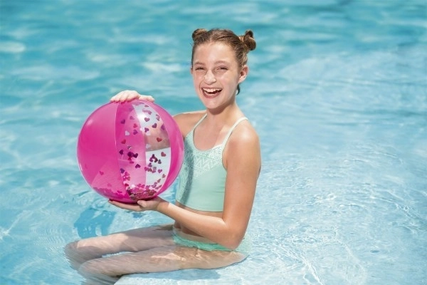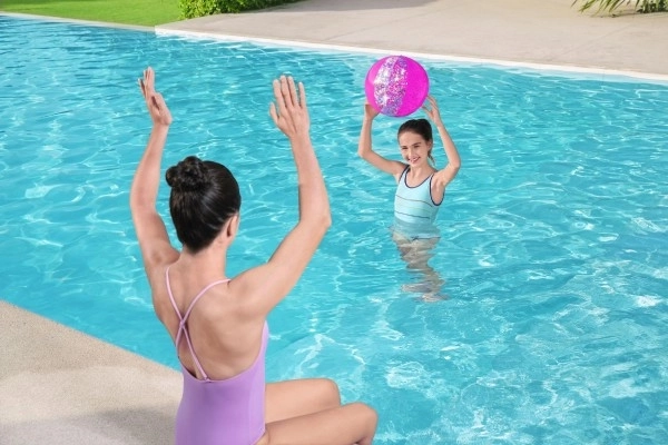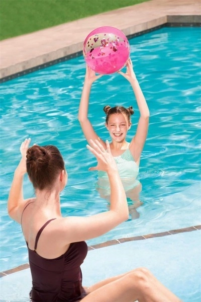 Průhledné panely s třpytkami vytvářejí při hře krásné světelné odlesky, takže míč vynikne na fotkách i ve vodě. Integrovaný ventil omezuje nežádoucí únik vzduchu a zajišťuje bezstarostné používání.