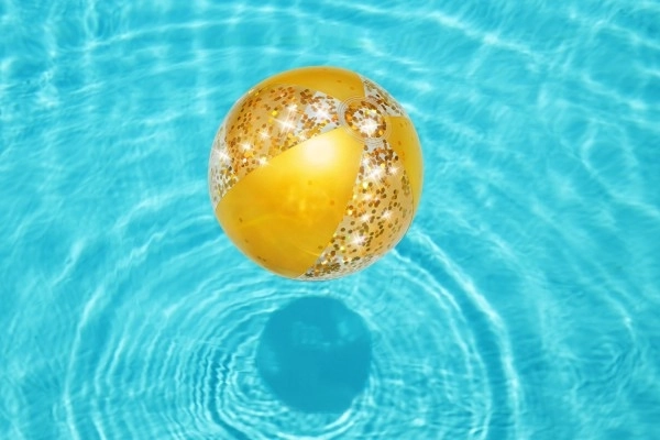 Zlaté třpytky uvnitř průhledných panelů vytvářejí zářivé odlesky, které vyniknou na slunci i ve vodě a dělají z míče nepřehlédnutelný doplněk letní zábavy.
