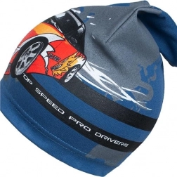 Dětská jarní čepička NEW BABY v modré barvě je ideální volbou pro přechodné období. Kvalitní bavlněný úplet je měkký, prodyšný a díky své pružnosti se dobře přizpůsobí dětské hlavičce. Roztomilý potisk závodního auta dodává čepičce styl a hravost.