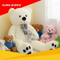 Gigantický plyšový medvěd KRUZZEL 180 cm zaujme na první pohled – jeho velikost vytváří skutečný „wow efekt“. Krémový (ecru) odstín, vyšívaný čumáček, lesklá očka a elegantní mašle mu dodávají přátelský a realistický vzhled. Měkké tělo je příjemné na dotek, poddajné při sezení i ležení a skvěle poslouží jako přitulná hračka, polštář i dekorace.