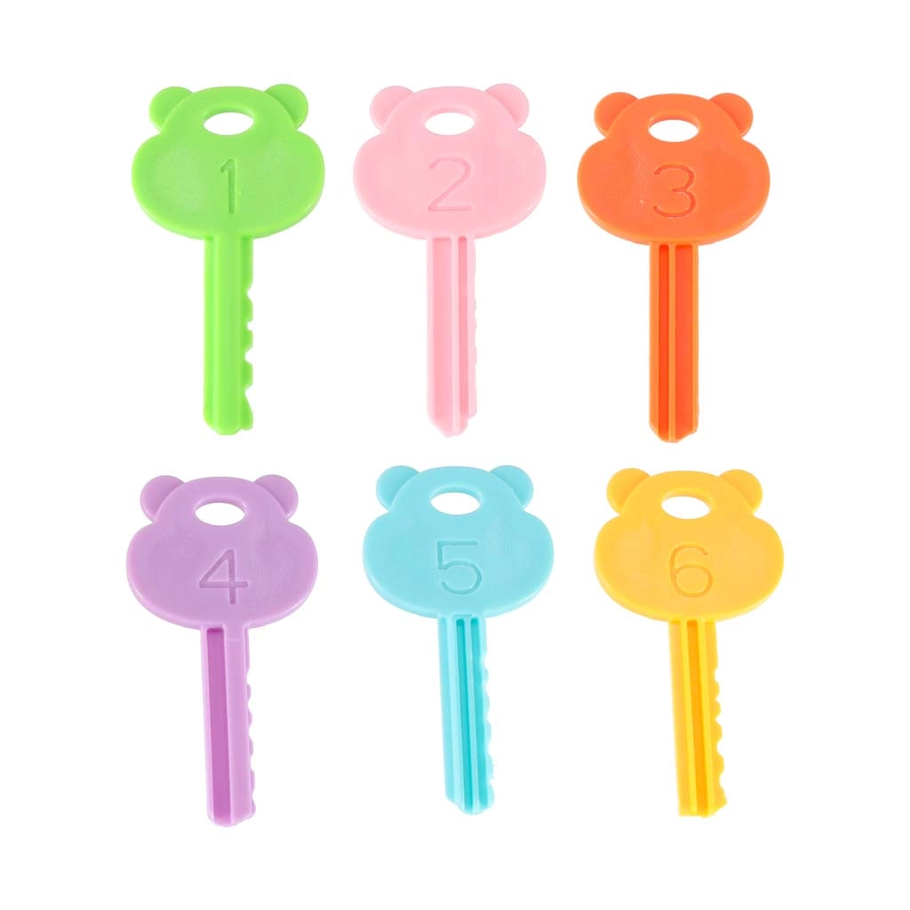 Šest ponumerovaných klíčků v různých barvách děti vede k přiřazování a rozlišování. Otočením klíčku vyskočí zvířátko a zazní číslo v angličtině.