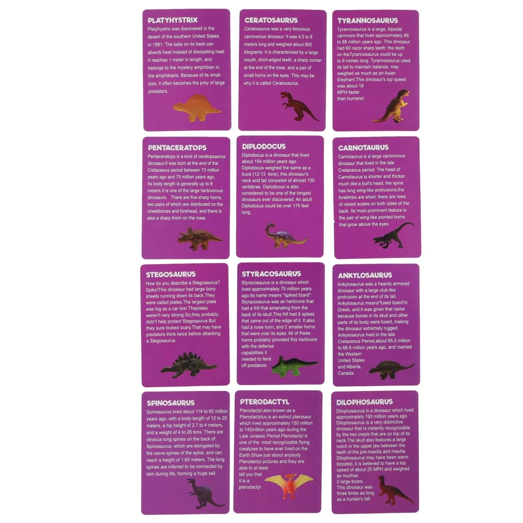Přiložené edukační karty s popisy dinosaurů podporují poznávání, rozšiřují obzory a propojují zábavu se skutečnými fakty.