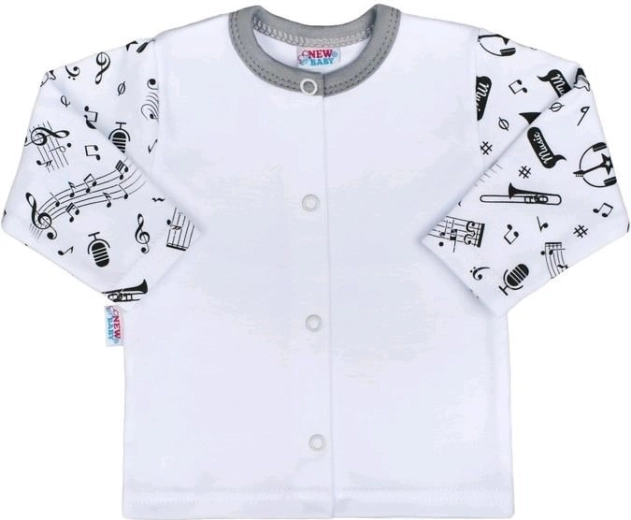 Hledáte pohodlný a stylový kousek do šatníku vašeho miminka? Bavlněný kabátek New Baby Music je skvělou volbou. Jednobarevné tělo doplňují rukávky s celoplošným hudebním potiskem, který zaujme na první pohled. Praktické zapínání na cvočky po celé délce výrazně usnadní oblékání i přebalování.