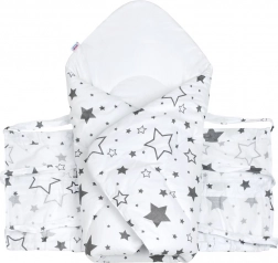 Tato klasická zavinovačka v bílé barvě se šedými hvězdičkami nabízí kombinaci pohodlí, bezpečí a nadčasového designu. Díky třem řadám šňůrek krásně drží tvar, snadno se přizpůsobí a miminko jemně obejme pro pocit jistoty. Prodyšný bavlněný povlak je přívětivý k dětské pokožce a kvalitní antialergická výplň napomáhá udržet optimální teplotní komfort.
