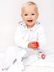 Tato semišová kojenecká mikina s kapucí je ideální na chladnější dny. Jemný povrch připomínající semiš zajišťuje komfort a hebkost, zatímco směs bavlny a polyesteru přináší lepší tvarovou stálost a snadnou údržbu. Roztomilý motiv berušky dodává mikině hravý vzhled, který si děti i rodiče zamilují.