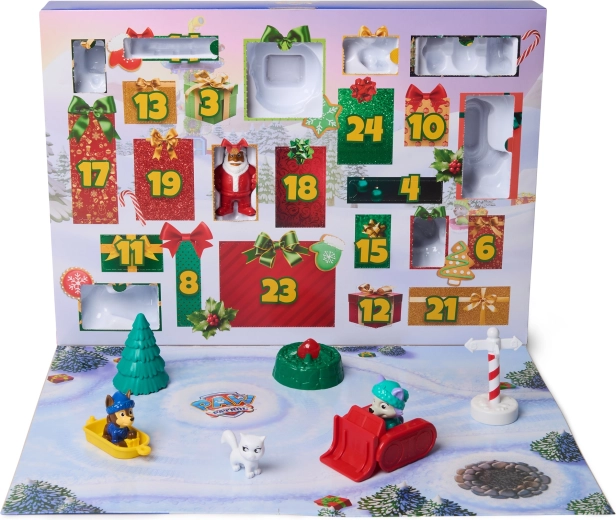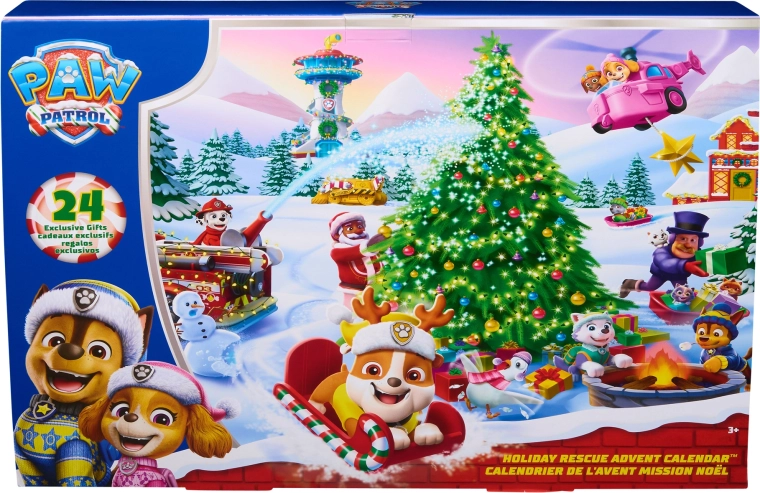 Tento barevný adventní kalendář od společnosti Spin Master přináší malým fanouškům PAW PATROL 24 tematických překvapení – od postaviček oblíbených štěňat v zimních kostýmech až po saně, stromek a další doplňky. Každé okénko otevírá nové možnosti hry a budování vlastních příběhů ze zasněženého Adventure Bay.