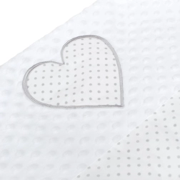 Součástí balení je srdíčkový polštářek a měkoučká peřinka ladící s designem – ideální do postýlky i kočárku.