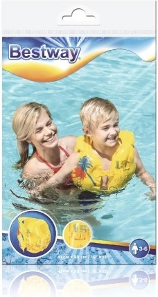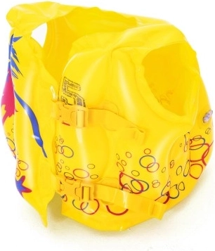 Bezpečná a zábavná plavecká vesta pro děti ve věku 3–6 let. Jasně žlutá barva a tropický design zajišťují nejen atraktivní vzhled, ale také snadnou viditelnost ve vodě.