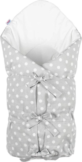 Zavinovačka New Baby v klasickém šněrovacím provedení se vrací jako osvědčená volba pro první měsíce miminka. Díky třem řadám stuh miminko pevně a pohodlně obejme, což navozuje pocit bezpečí a napomáhá klidnému spánku. Měkký bavlněný potah je šetrný k citlivé pokožce a šedý design s puntíky se snadno kombinuje s výbavičkou.
