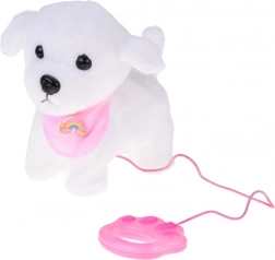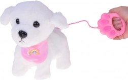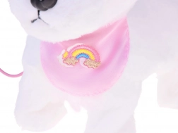 Roztomilý interaktivní plyšový pejsek na vodítku potěší každého malého milovníka zvířátek. Po stisknutí tlačítka na vodítku chodí, štěká, vydává realistické zvuky a vrtí ocáskem. Je vyroben z měkkého, na dotek příjemného materiálu a zdobí ho roztomilá bandana s duhou – ideální kamarád pro každodenní hraní i jako skvělý dárek.