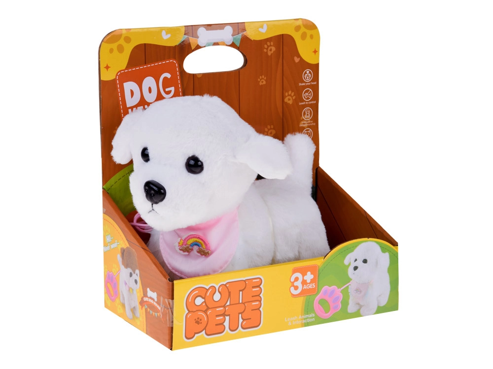 Tento interaktivní pejsek přináší dětem radost i zábavu při společných "procházkách". Díky jednoduchému ovládání na vodítku se snadno rozběhne dopředu, poštěkává a vrtí ocáskem jako skutečný mazlíček. Měkoučké provedení a pečlivé detaily (lesklá očka, roztomilý čumáček) podporují mazlení i fantazijní hru.