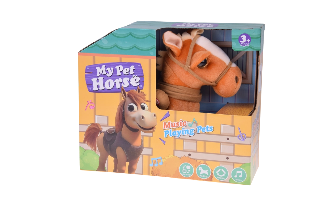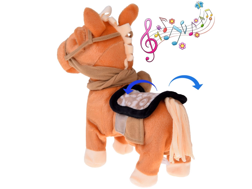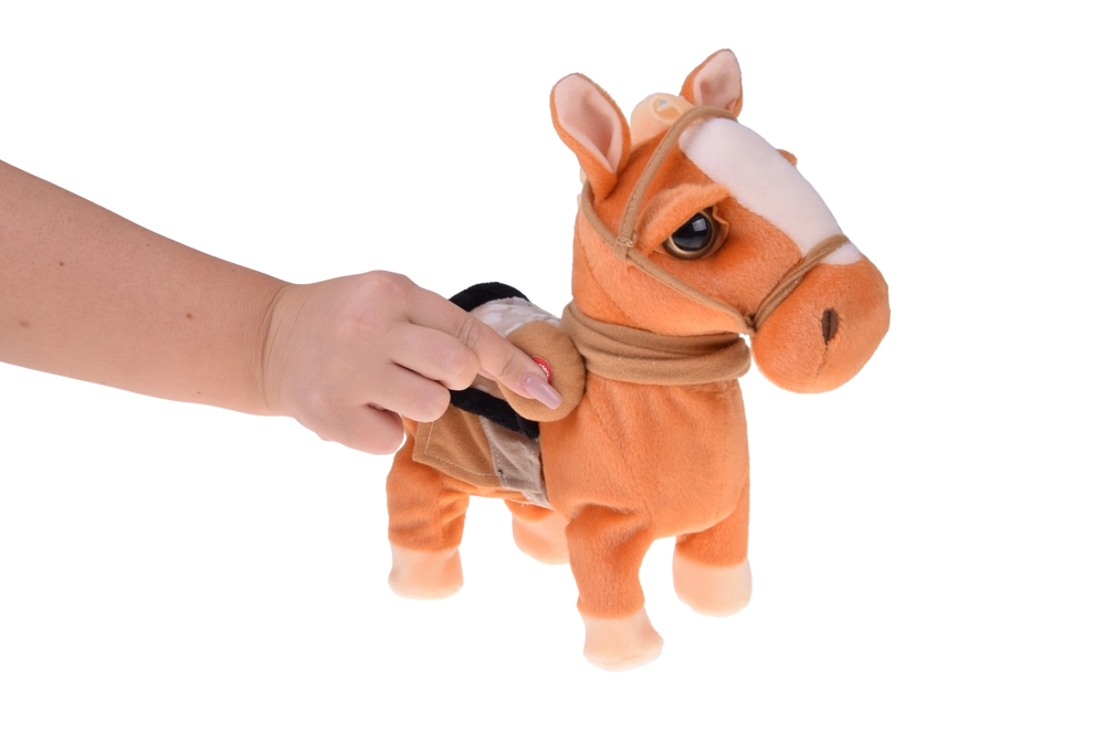 Objevte veselého kamaráda na každý den. Tento interaktivní plyšový koník ožívá pohybem i zvuky: kráčí, řehtá a předvádí taneček na hudbu country. Díky příjemnému plyšovému povrchu je ideální na mazlení, zatímco jednoduché ovládání jedním tlačítkem potěší i menší děti.