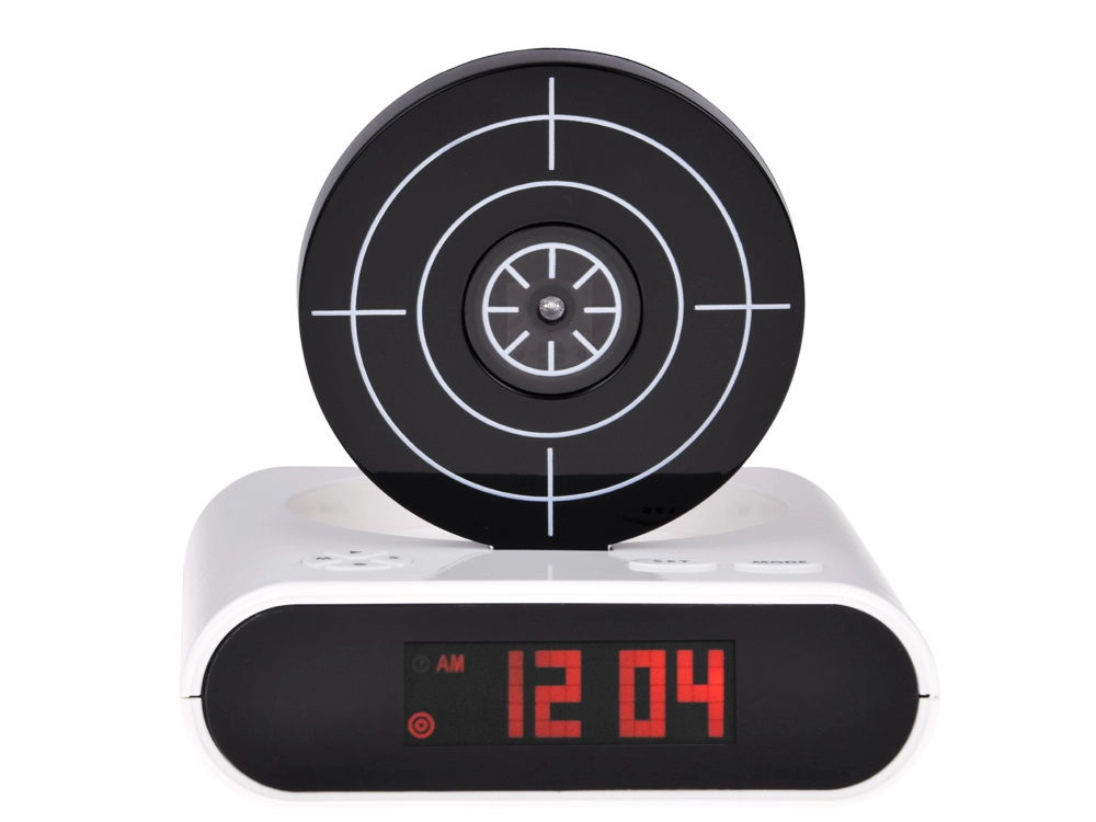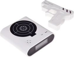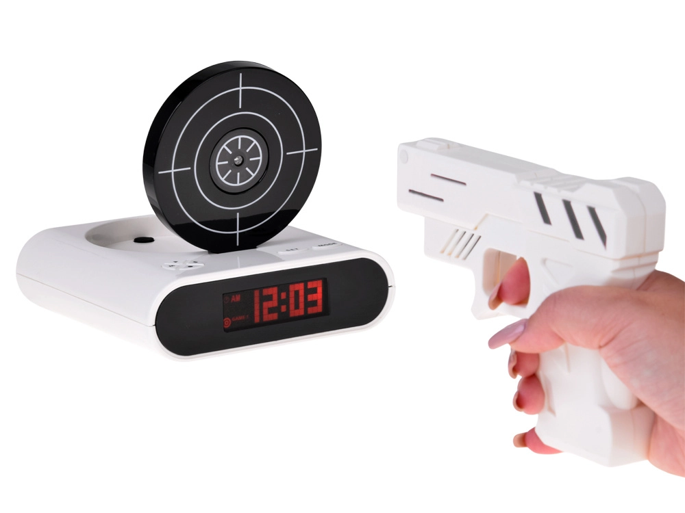 Ráno už nebude nuda. Když se spustí alarm, stačí zamířit pistolí na terč a trefit střed – budík zmlkne až po zásahu. Můžete si nahrát vlastní budicí tón (od šumu oceánu po oblíbené techno) nebo použít výchozí alarm. Pro zábavu i trénink přesnosti jsou připraveny 2 herní režimy.