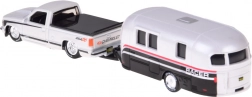 Tento licencovaný set potěší každého fanouška americké klasiky. Model CHEVROLET 454 SS pick-up (1993) v elegantní bílé barvě je spojen s karavanem, který umocňuje realistický vzhled i herní možnosti. Kovové díly a pečlivé zpracování podtrhují sběratelskou hodnotu.