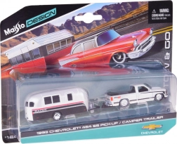 Sbírkový set od značky Maisto přináší legendární 1993 CHEVROLET 454 SS v měřítku 1:64 doplněný o funkční karavan. Kovová karoserie, plastové šasi a precizní detaily zaručují věrné provedení a skvělý vzhled v každé kolekci. Set nabízí odnímatelný tažný hák a odpojitelný karavan pro větší variabilitu při vystavování i hraní.