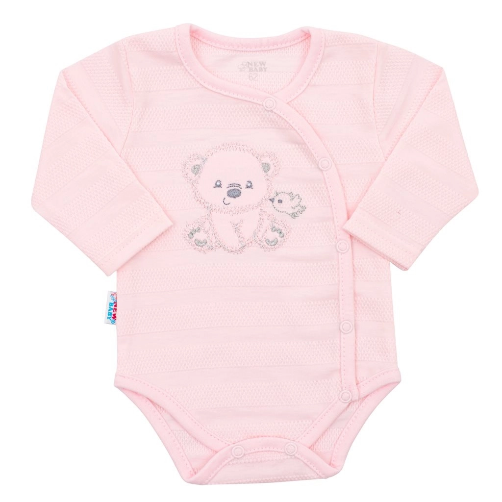 Tato elegantní novorozenecká sada New Baby Sweet Bear nabízí vše, co miminko potřebuje hned po narození. Díky měkoučké 100% bavlně je oblečení příjemné na dotek a šetrné k citlivé dětské pokožce. Promyšlené zapínání na cvočky usnadňuje oblékání i přebalování.