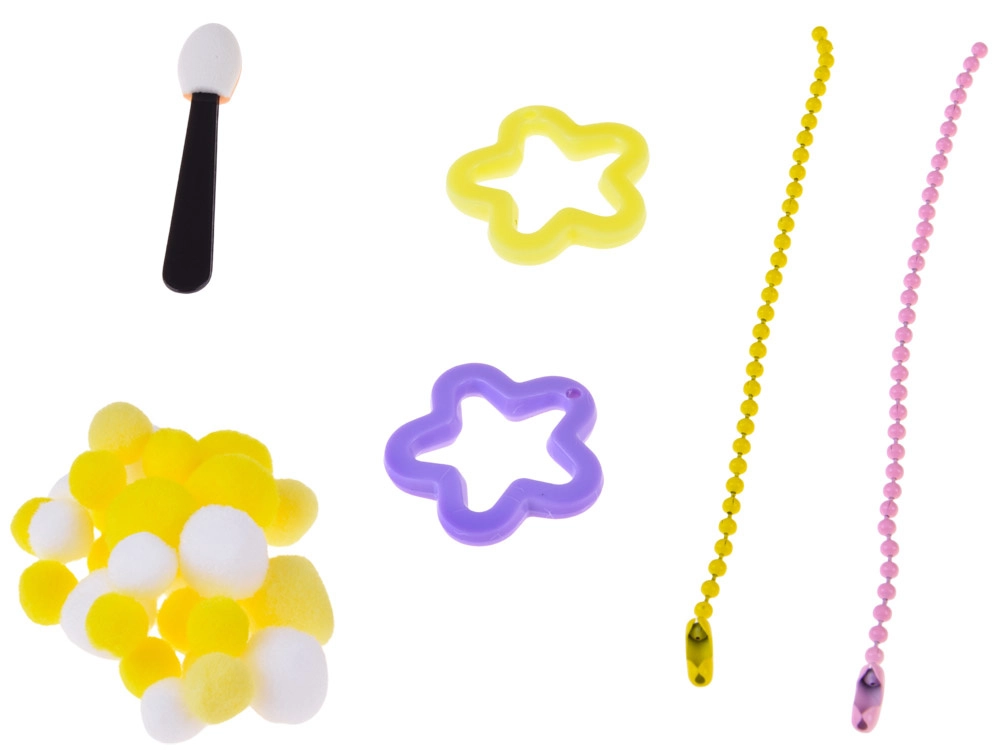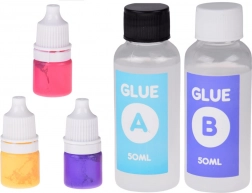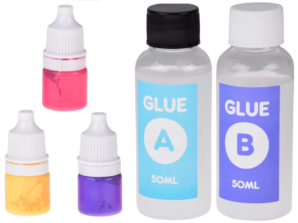 - Forma na 2 slizy, míchací tyčinka, kleštičky, 2× lepidlo (A+B), odměrka, houbička/pacynka, 3× barvivo, měkké dekorační kuličky, ochranné rukavice, 2× hvězdička, 4× průhledný kelímek, 2× ozdobný sáček, 2× řetízek na přívěsek, tácek