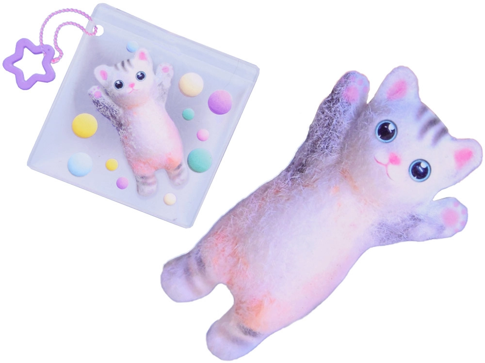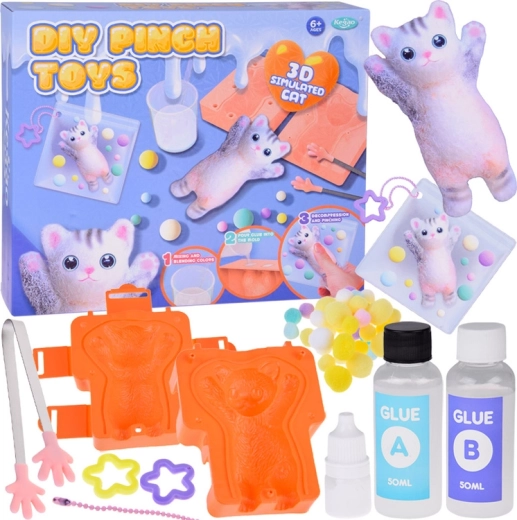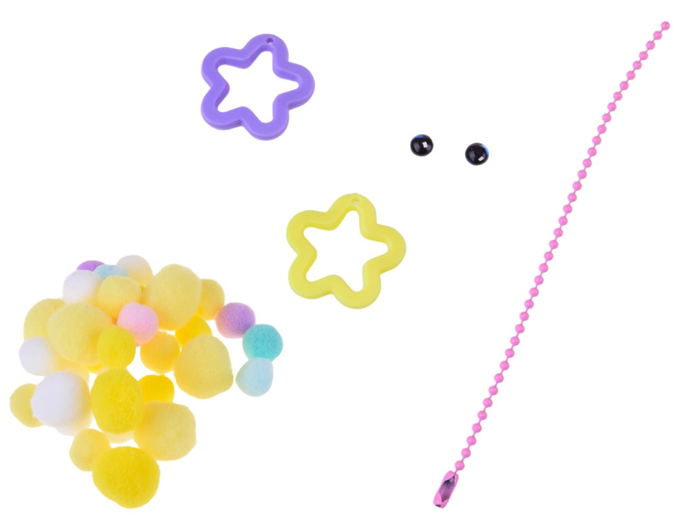 Objevte zábavný DIY set, díky kterému si děti samy vytvoří roztomilého kočičího přívěsek. Smíchají hmotu, vybarví, dozdobí pompomy, hvězdičkami a hebkým „peřím“ a hotovou kočičku uloží do ozdobného sáčku s řetízkem. Výsledek je antistresový, měkký a hebký talisman, který mohou nosit všude s sebou.