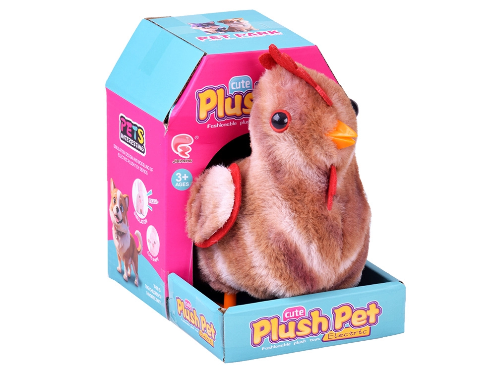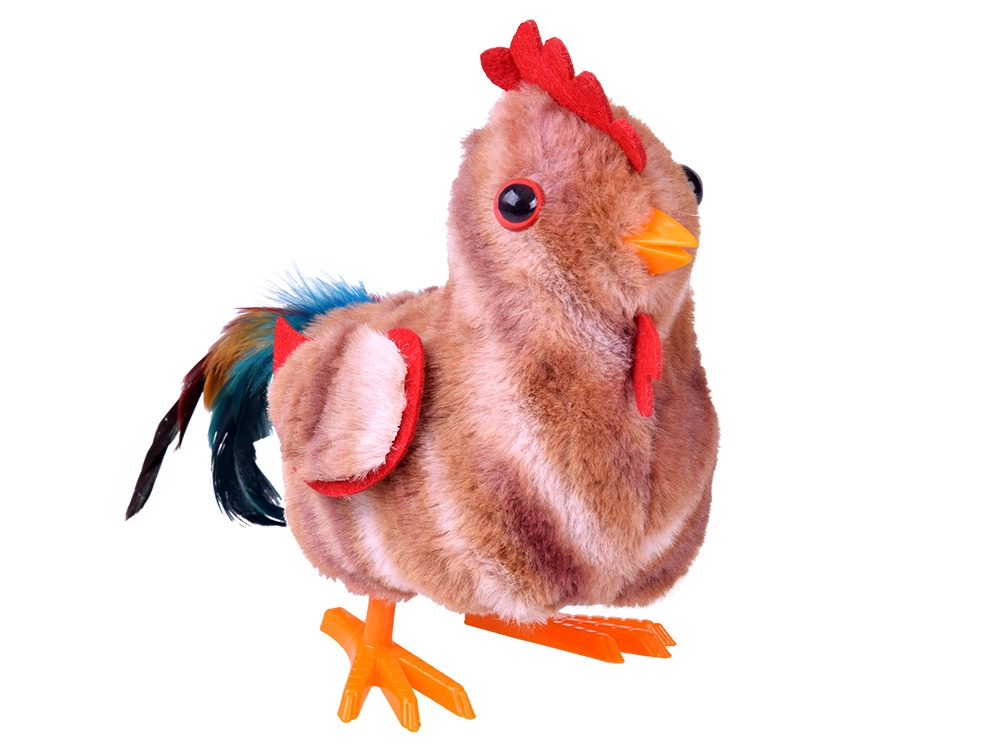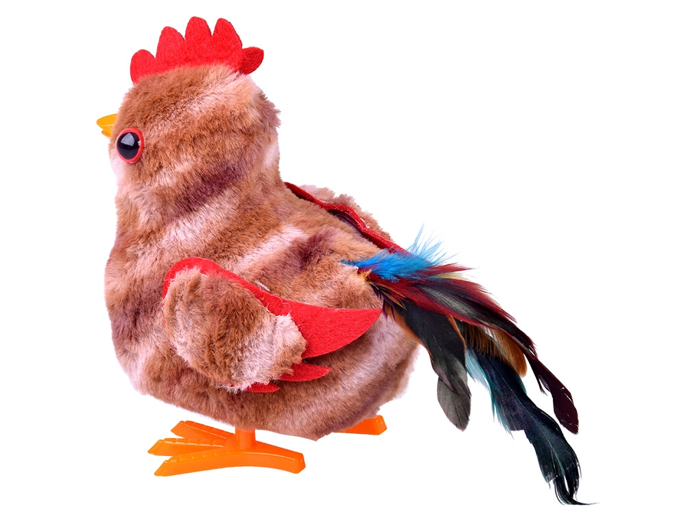 Po zapnutí se kohout rozběhne drobným krokem a vesele mává křídly – perfektní pro dynamickou a veselou hru.