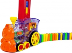 Barevná lokomotiva, která sama ukládá kostky domina do rovnoměrných rozestupů, zajistí hodiny kreativní zábavy pro kluky i holky. Díky LED podsvícení a zvukovým efektům je hra ještě atraktivnější a zároveň rozvíjí jemnou motoriku, koordinaci oko–ruka i učení barev. Součástí je zásobník na kostky a 80 dílků ve 4 barvách.