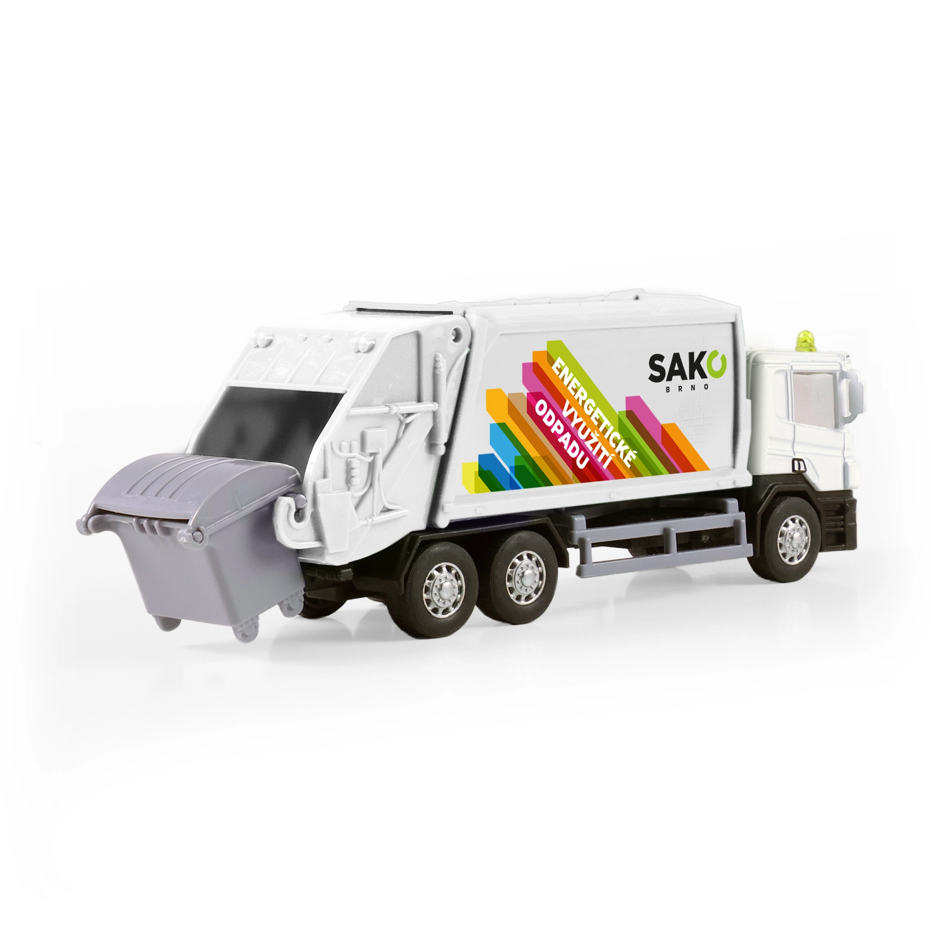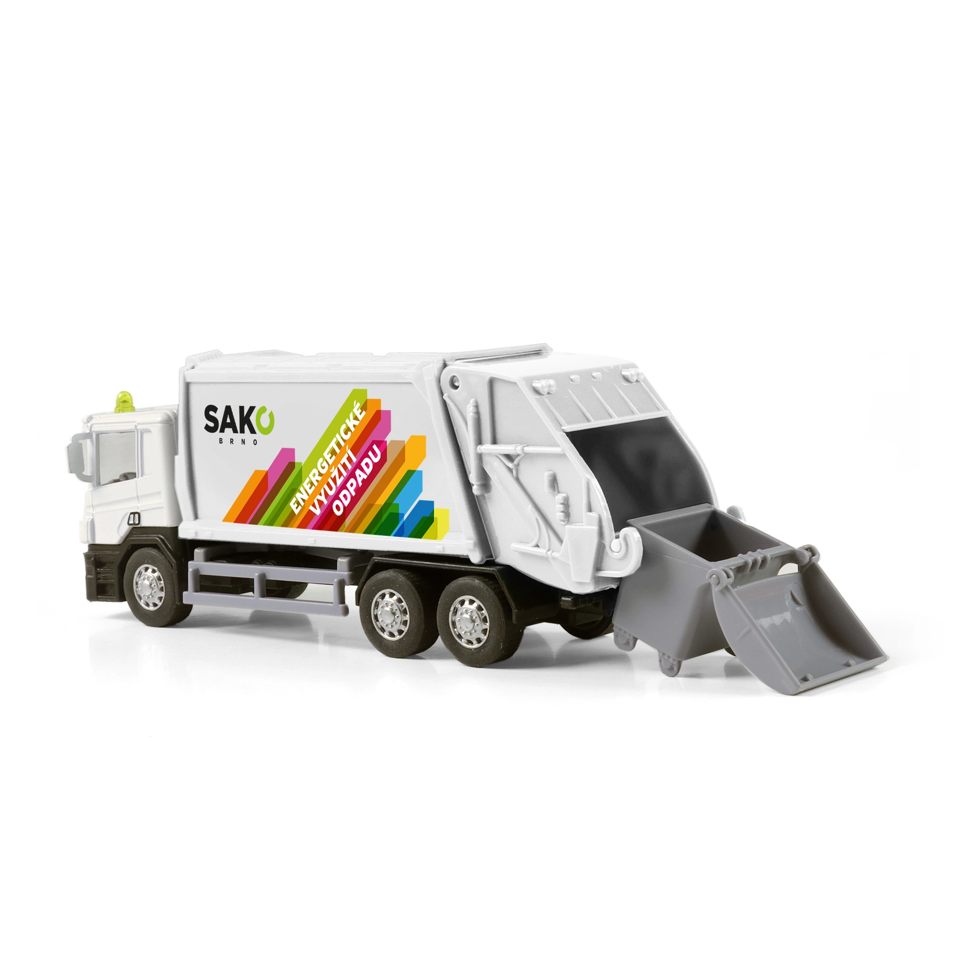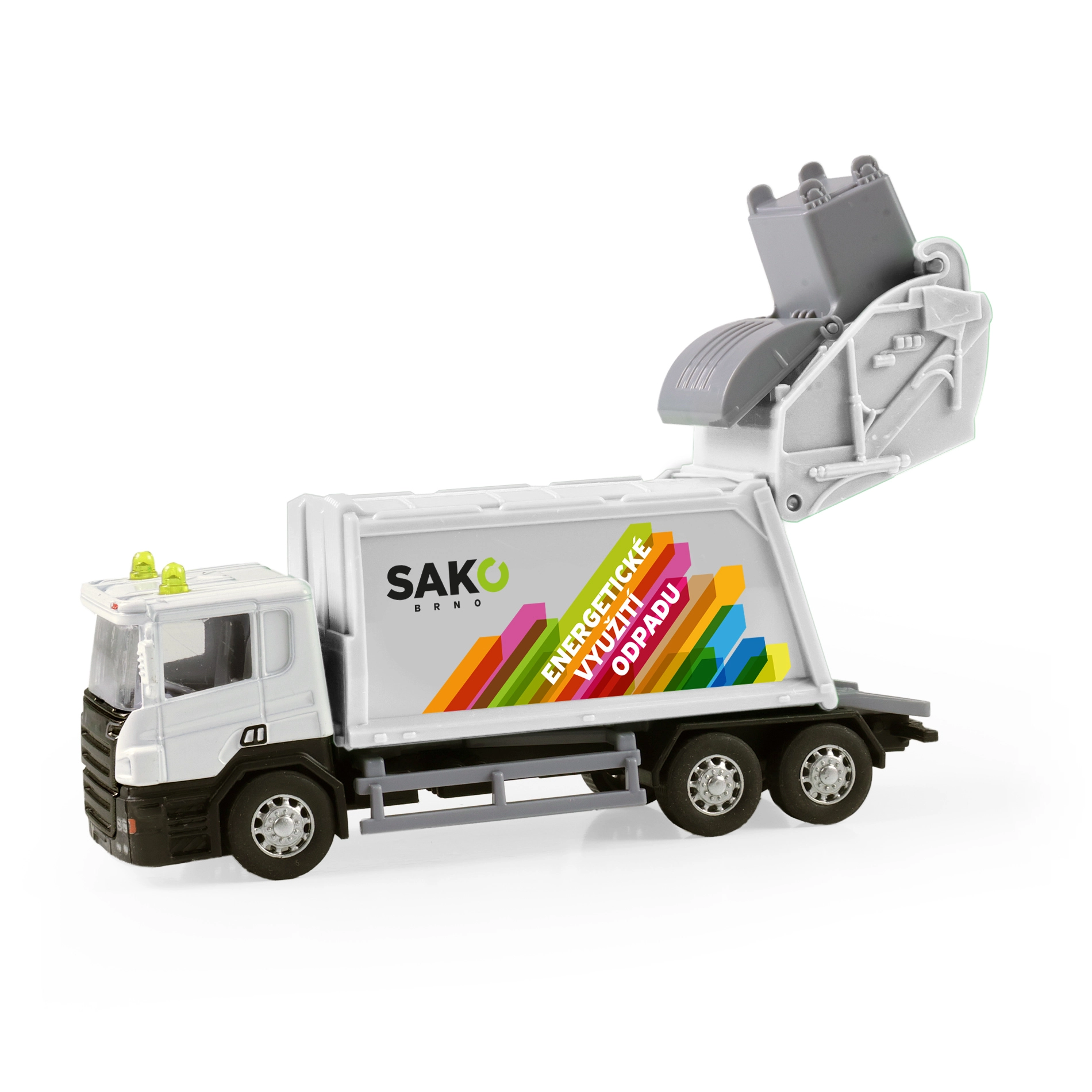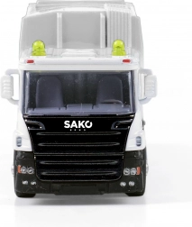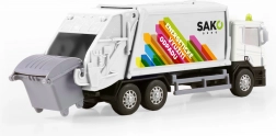 Užijte si spoustu zábavy s detailně zpracovaným popelářským autem s logem SAKO. Kovové šasi dodává modelu pevnost, zatímco plastová korba s odklápěcími dveřmi umožňuje realistické nakládání a vyklápění odpadu. Součástí je i otevírací popelnice, takže děti mohou napodobovat skutečný provoz svozu odpadu.