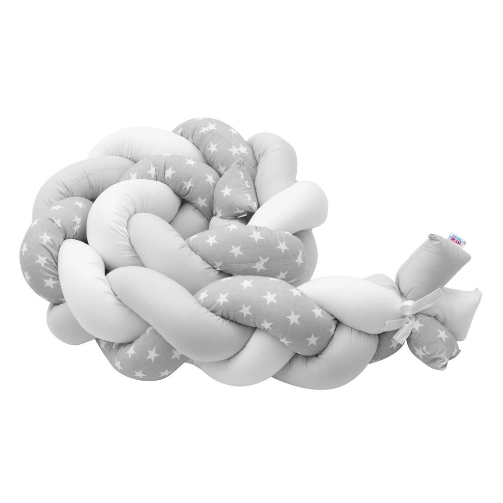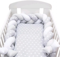 Ochranný mantinel ve tvaru pleteného vrkoče z kolekce NEW BABY jemně obepne vnitřní okraj postýlky a tlumí nárazy. Tři měkké prameny jsou ručně spletené z bavlněného potahu a vyplněné antialergickým vláknem pro maximální bezpečí a pohodlí miminka.