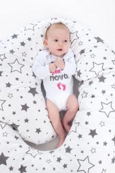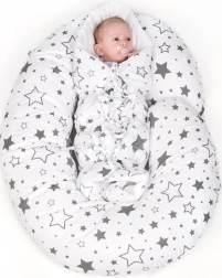 Stylová a praktická náhradní obliečka pro kojicí polštář ve tvaru C od značky New Baby v neutrálním šedém motivu hvězd. Díky skrytému zipu ji snadno a rychle vyměníte, materiál z 100% bavlny je šetrný k citlivé pokožce a má certifikaci OEKO-TEX Standard 100.