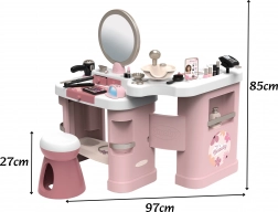 Dětské centrum krásy SMOBY BEAUTY je kompletní salon 3v1 pro malé stylistky a stylisty. Děti mohou střídat role kadeřnice, vizážistky i manikérky a díky bohaté výbavě napodobit reálné postupy. Stabilní konstrukce, přehledné úložné prostory a praktická stolička (cca 27 cm) zajistí pohodlné a bezpečné hraní.