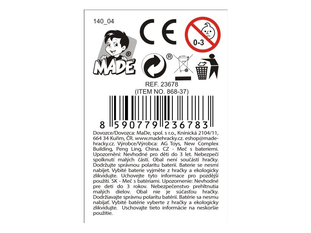 Meč je dodáván v displej boxu, což usnadňuje vystavení i skladování. Praktické rozměry umožňují pohodlné držení a manipulaci i menším dětem.
