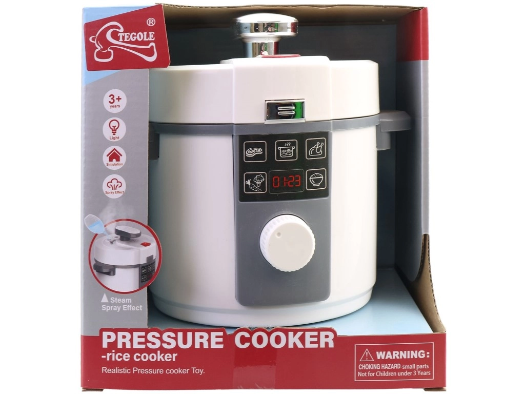 Dětský tlakový hrnec – rýžovar na baterie o průměru 18 cm z kvalitního plastu přináší realistické zvuky a světelné efekty (po vložení baterií) a podporuje kreativní hru na vaření. Je vhodný pro děti od 3 let a dodává se v dárkovém window box balení.