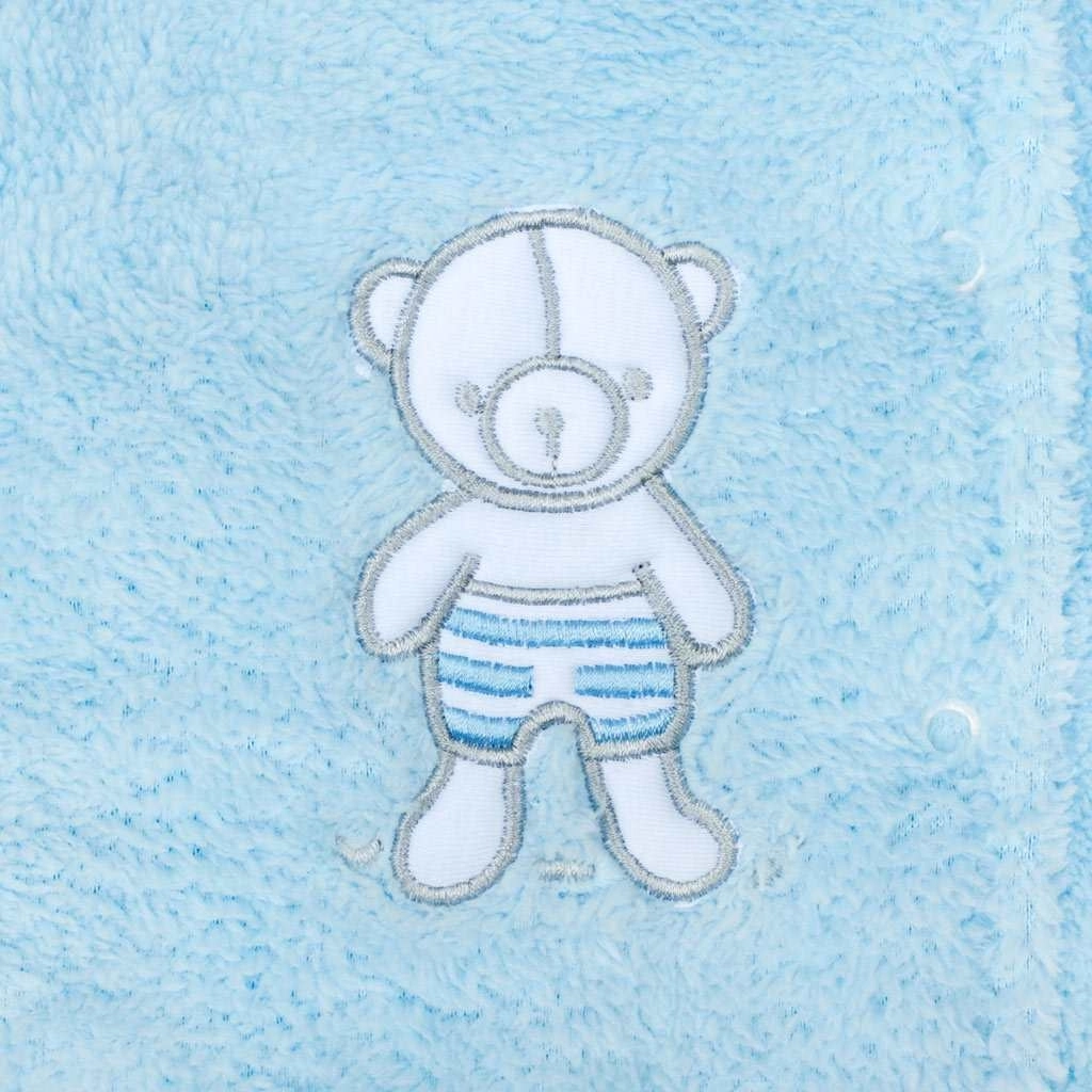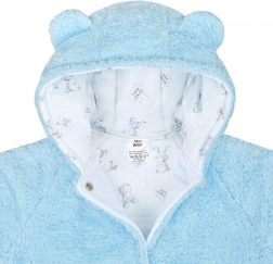 Hřejivý zimní kabátek pro miminka s roztomilými oušky na kapuci a potiskem medvídků nabízí měkký fleece, bavlněnou podšívku a praktické zapínání na cvočky po celé délce. Ideální na chladné dny pro pohodlí a styl vašeho děťátka.