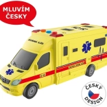 Tato detailně zpracovaná sanitka v českém designu Zdravotnické záchranné služby přináší dětem spoustu akce a zábavy. Po stisknutí tlačítka spouští realistické hlášení dispečinku a posádky, doplněné o funkční maják se světlem a zvukové efekty. Díky pohonu na setrvačník se auto snadno rozjede po podlaze bez potřeby neustálého tlačení.