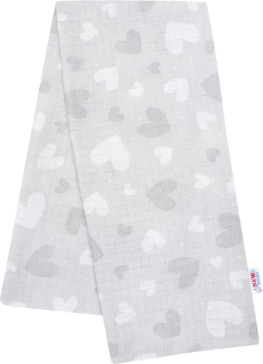 Bavlněná dětská plenka NEW BABY se vzorem šedých srdíček kombinuje praktičnost a pohodlí pro každý den s miminkem. Díky 100% bavlně je příjemná na dotek, dobře saje a je šetrná k citlivé pokožce novorozenců. Univerzální rozměr umožňuje široké využití doma i na cestách.
