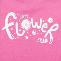 Stylová a pohodlná soupravička New Baby Happy Flower je ideální na každý den. Tričko s roztomilým nápisem a volánkovými rukávky dodá outfitu šmrnc, zatímco tepláčky s celoplošným květinovým vzorem zajistí maximální komfort při hraní i odpočinku. Praktické zapínání na cvoček na zadní straně u krku usnadňuje oblékání a svlékání.