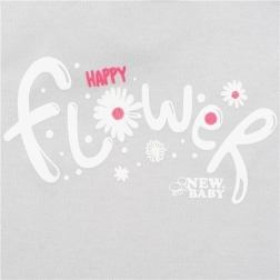 Tato 2dílná souprava NEW BABY Happy Flower kombinuje něžný design a maximální pohodlí pro každodenní nošení. Tričko zdobí nápis „Happy flower“ a šmrncovní volánkové rukávky, zatímco tepláčky s celoplošným květinovým potiskem mají zúžené nohavice s lemem, aby lépe držely na místě.