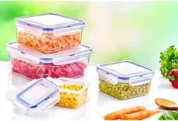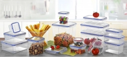 Průhledné stěny pro rychlou kontrolu obsahu a možnost stohování šetří místo v lednici i ve skříňkách.