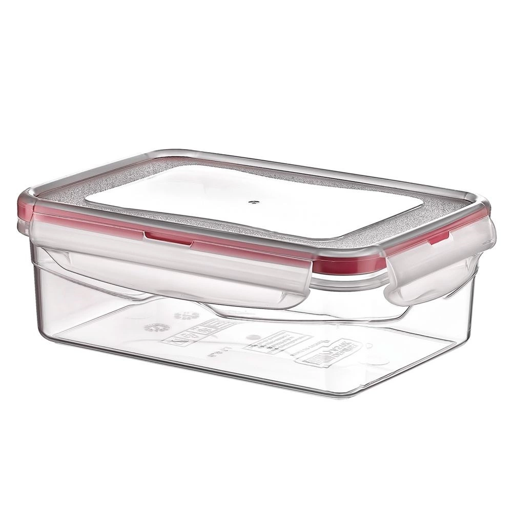 Transparentní plastový box na potraviny o objemu 400 ml udrží vaše jídlo déle čerstvé díky silikonové těsnicí vložce a čtyřem uzavíracím klipům. Kompaktní rozměry 15 × 10,5 × 5 cm se hodí do lednice, tašky i lunch boxu a umožňují snadné vrstvení a organizaci.