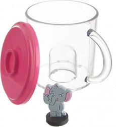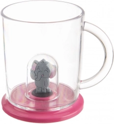 Praktický hrnek pro děti s roztomilou figurkou slona na pokličce, kterou lze sejmout a použít jako hračku. Hrnek je z velmi odolného, průhledného tritanu – materiálu, který nepřebírá pachy ani chutě a je bezpečný pro děti (bez BPA). Díky kompaktním rozměrům se pohodlně drží a skvěle se hodí pro každodenní pití doma i na zahradě.