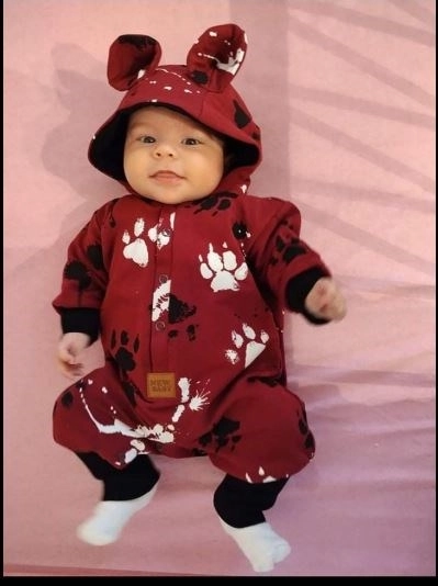 Roztomilý a praktický dětský overal NEW BABY s kapucí a oušky je ideální pro jaro i podzim. Je z příjemné směsi bavlny s elastanem, má měkkou bavlněnou podšívku a po celé délce pohodlné zapínání na cvočky pro snadné oblékání a přebalování. Celoplošný vzor tlapiček a kapuce s oušky dodávají hravý vzhled, zatímco elastické lemy na rukávech a nohavicích zajišťují pohodlné a teplé nošení.