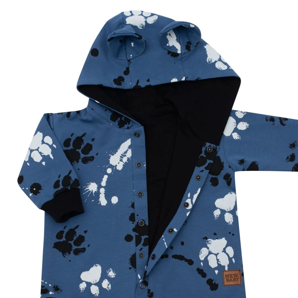 Roztomilý a praktický dětský overal New Baby Paw z příjemné bavlny s příměsí elastanu přináší maximální pohodlí pro miminko. Má kapuci s oušky, celoplošný dětský vzor a zapínání na cvočky po celé délce pro snadné oblékání i přebalování. Měkká bavlněná podšívka zajišťuje lepší tepelný komfort, ideální na jaro a podzim.
