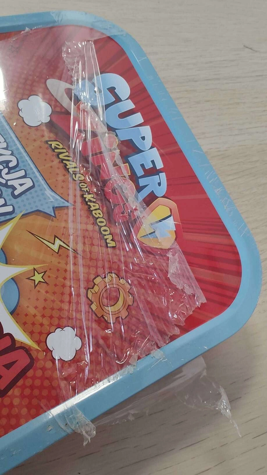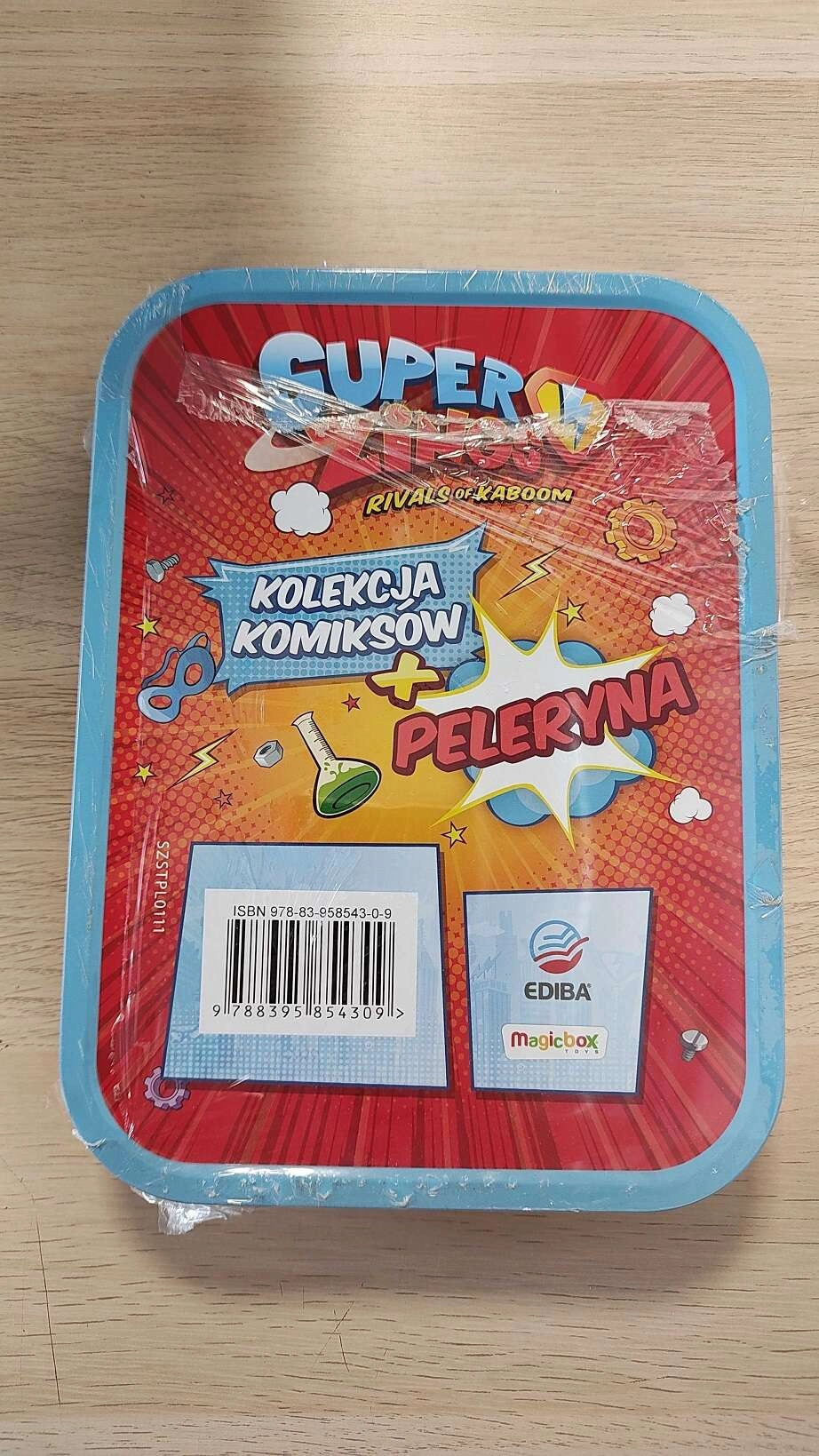 - Sběratelská plechovka, náhodný komiks, náhodný plášť (červený nebo modrý), náhodný magnet s hrdinou